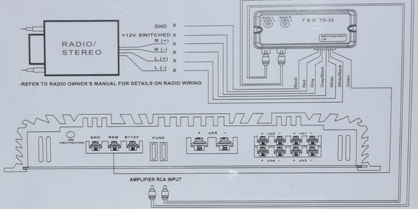 • Allows the addition of 2/4 Channel amplifiers to stereo without RCA outputs