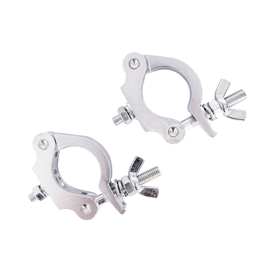 The Hybrid HC200 is a heavy duty half-coupler suitable for temporary or permanent installations of lighting fixtures onto a 50mm diameter truss / Pole. Securing the lighting fixture onto the coupler is simple with the M10 bolt, spring washer and nut, and securing the coupler onto the 50mm truss / pole is even easier with the bolt and wing-nut foldable mechanism.
